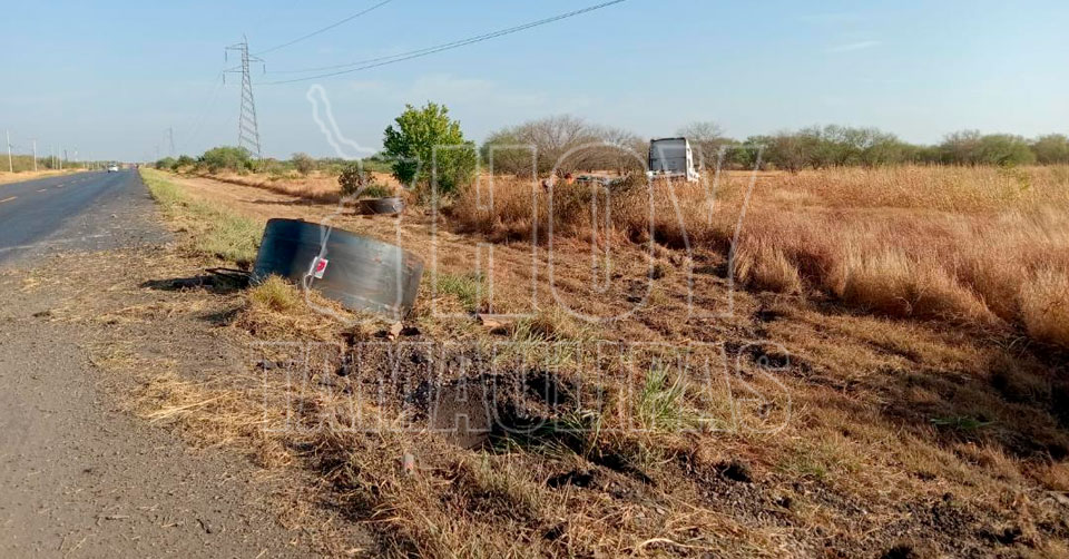 Por otro lado, un tráiler derrapó fuera de la cinta asfáltica al circular sobre la misma carretera a un kilómetro de distancia del ejido ‘’El Enchilado’’.