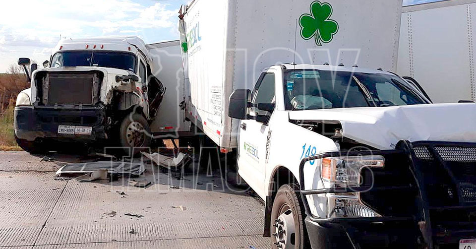Nuevo Laredo, Tamaulipas. — Cinco unidades de carga se vieron involucradas en un aparatoso accidente registrado en el Libramiento Mex 2, dejando daños cuantiosos y un operador lesionado.