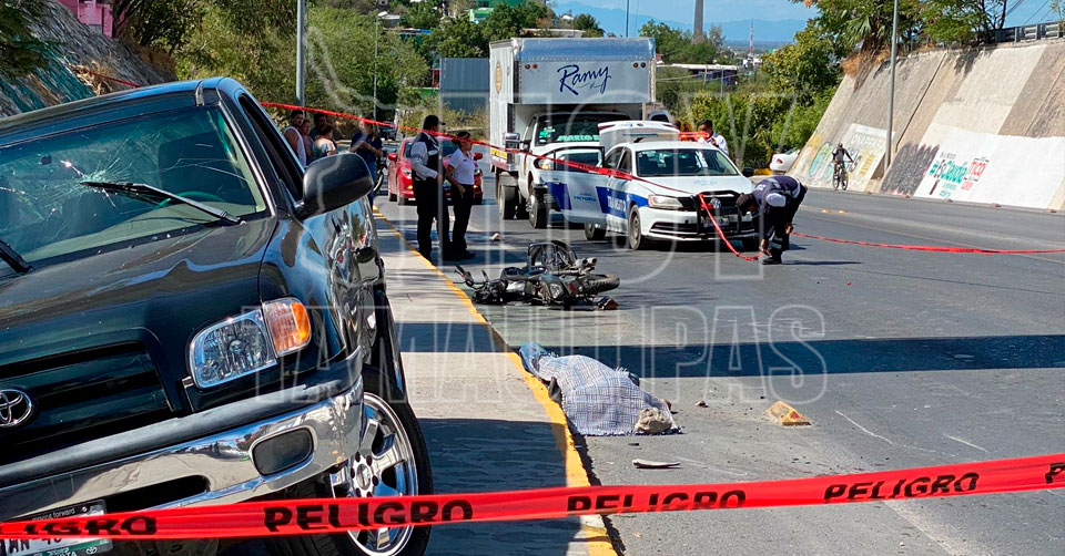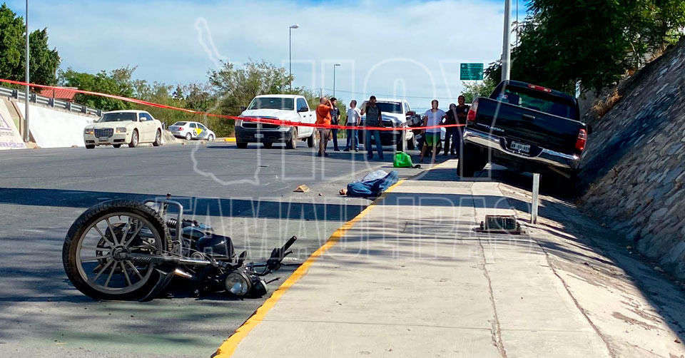 Ciudad Victoria, Tamaulipas. - Un motociclista perdió la vida trágicamente esta tarde al ser arrollado por la conductora de una camioneta, quien presuntamente perdió el control de la unidad en el Bulevar Fidel Velázquez y calle Simón Bolívar de la colonia Horacio Terán en Ciudad Victoria.
