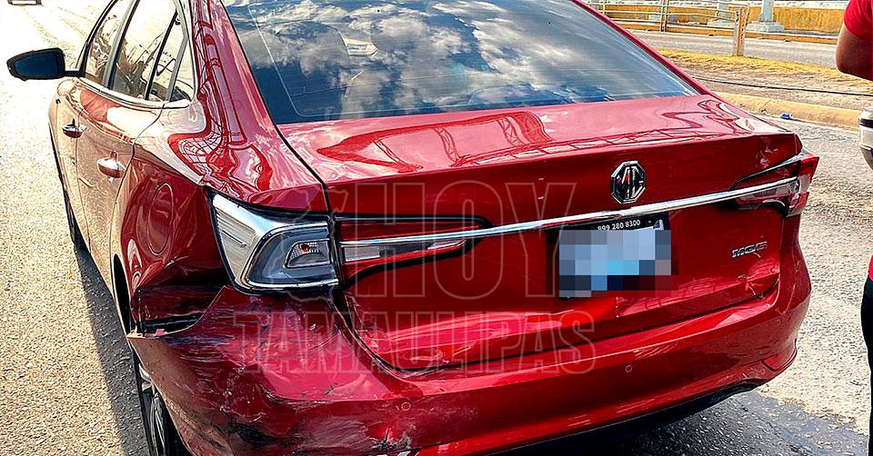 Antes de llegar al cruce con la Avenida Eva Sámano, chocó contra dos vehículos, cuyos choferes se encontraban detenidos a la espera del cambio de luz roja a verde en el semáforo.