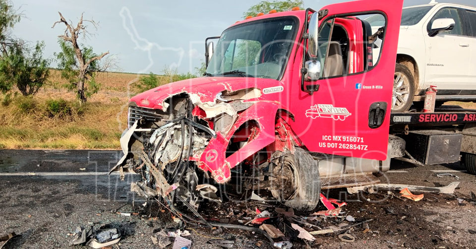 San Fernando, Tamaulipas. – Un hombre y una mujer perdieron la vida esta tarde al impactarse la camioneta en la que viajaban contra dos grúas, en el kilómetro 238 de la carretera Victoria-Matamoros, a la altura de la colonia agrícola González Villarreal.