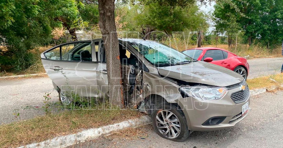 Sin embargo, obstruyó el paso al Mazda deportivo dándose el fuerte choque que provocó que el Aveo saliera proyectado contra un árbol en medio del camellón.