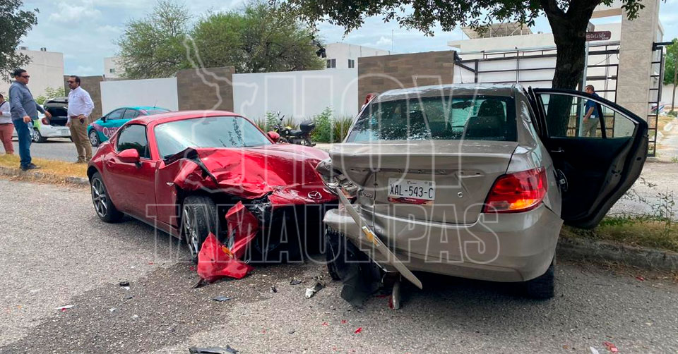 Destrozan sus autos tras fuerte choque en Ciudad Victoria