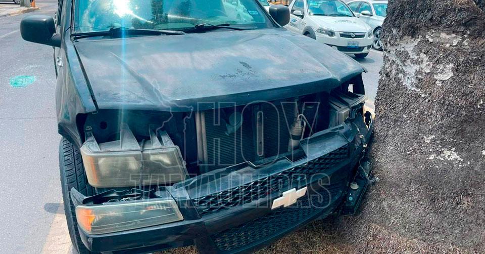 Del encontronazo, el coche salió proyectado hacia adelante y la camioneta trepó al camellón central y se pudo apreciar que se estrelló contra una palma.