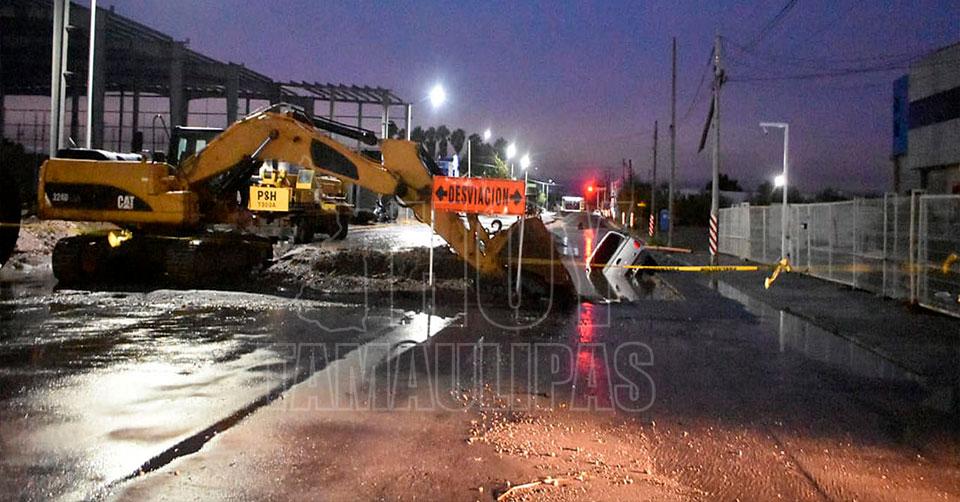 Al llegar a la altura de la avenida Leandro Valle, donde se realiza una obra en el suelo, no vio el señalamiento de desviación debido a la intensa lluvia y cayó en ésta que se había llenado de agua.