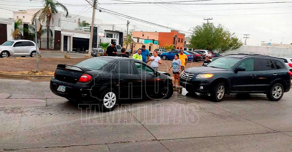 Nuevo Laredo, Tamaulipas.— Un accidente de tránsito se registró en la colonia Villas de la Fe, al poniente de Nuevo Laredo, cuando una conductora invadió el carril contrario y chocó de frente contra otro vehículo, causando daños materiales.