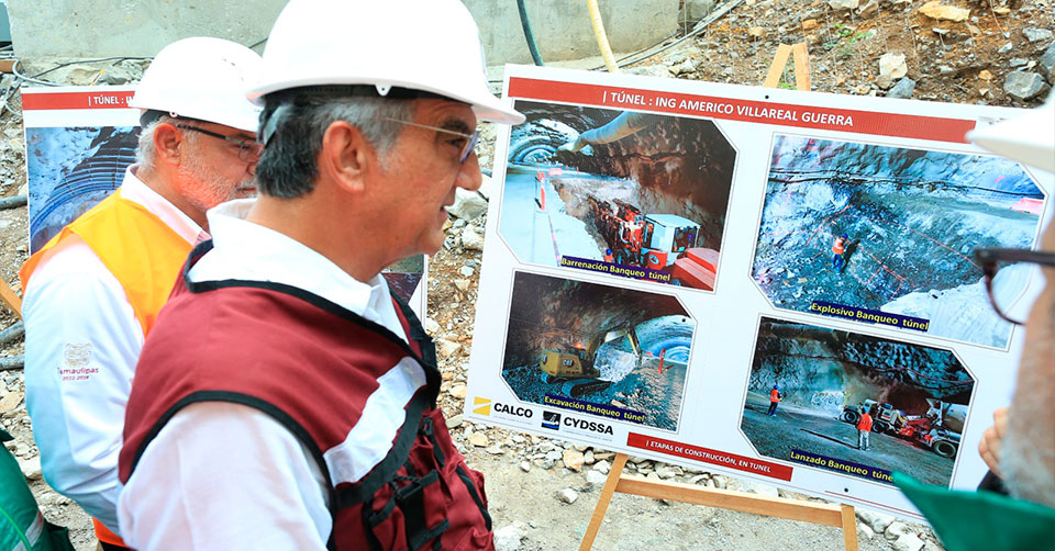 Al recorrer los 471 metros de avance en el túnel, el cual tendrá una longitud final de 1,816 metros, uno de los más largos del país en este tipo de obras, el gobernador fue informado que llevará el nombre del ex gobernador Américo Villarreal Guerra.