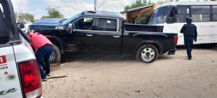En el sitio los tripulantes de una camioneta GMC tipo Sierra color negra con blindaje artesanal, se estrellaron contra autos estacionados de un taller mecánico.