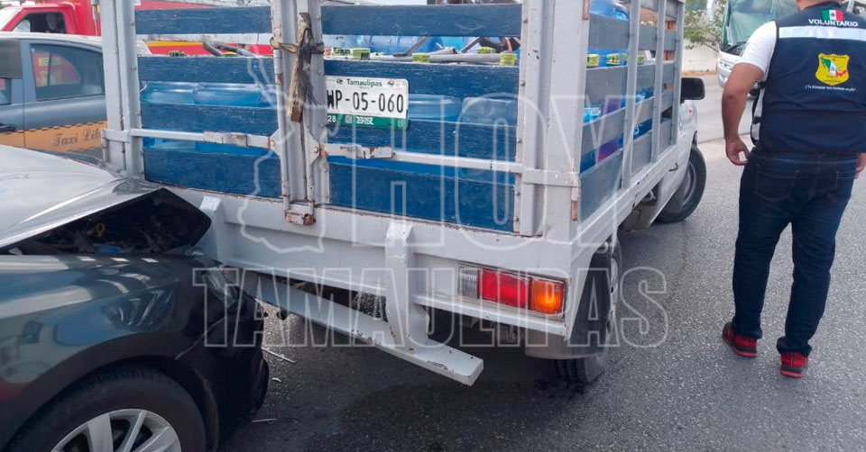Tampico, Tamaulipas. - Daños materiales considerables dejó como saldo aparatoso choque múltiple en el que se vieron involucrados tres vehículos, entre ellos dos camionetas y un carro.