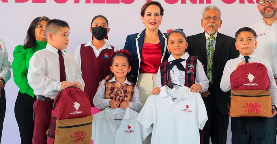 Nuevo Laredo, Tamaulipas. - El Gobierno de Nuevo Laredo realizó la entrega de uniformes, mochilas y útiles escolares a los alumnos de preescolar, primaria y secundaria para cumplir así con el compromiso de que los estudiantes contaran con este apoyo desde el primer día de clases.