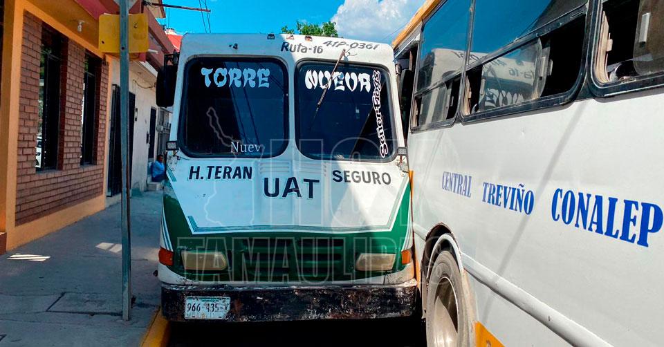 Chocan “micros” en la Mainero de Ciudad Victoria; sólo daños