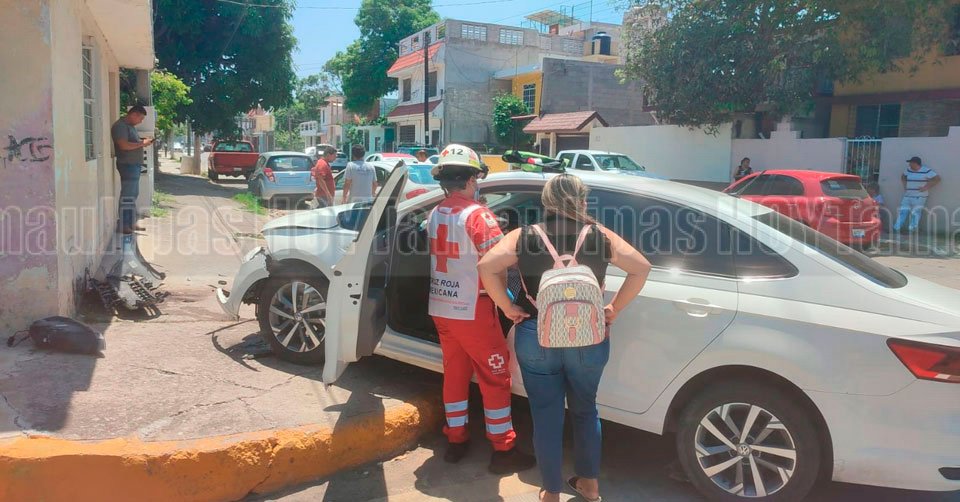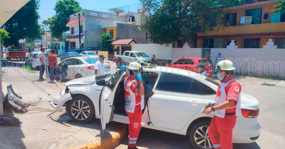 Presuntamente al llegar a la intersección la señora no hizo alto, provocando la colisión con un carro Ventus que se desplazaba por la calle Jaumave de poniente a oriente, resultando en el accidente lesionados los dos conductores involucrados, así como un acompañante de la última unidad, a quienes el personal de la Cruz Roja les dio los primeros auxilios, procediendo a los oficiales de vialidad a deslindar las responsabilidades correspondientes.