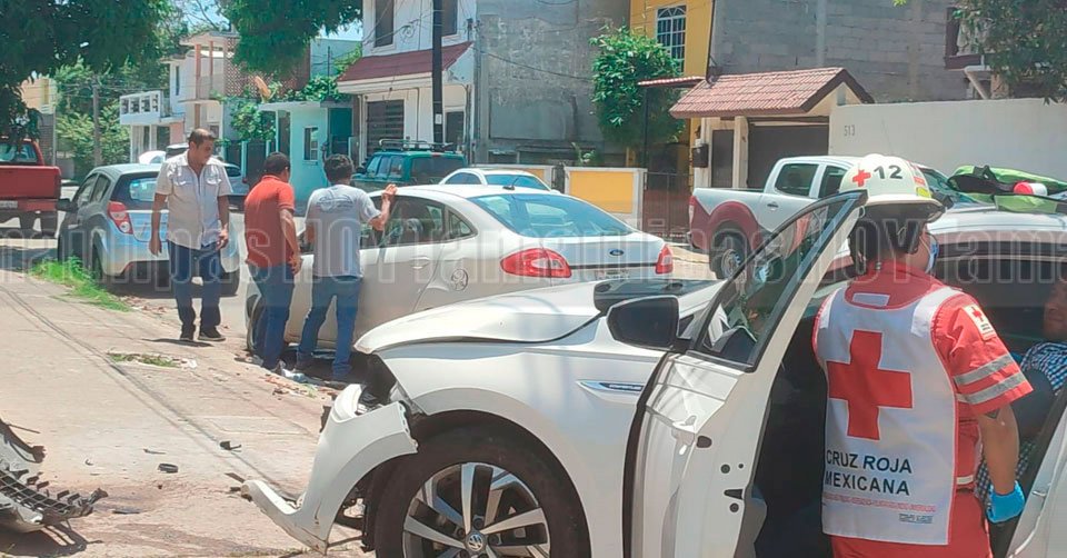 Ciudad Madero, Tamaulipas. - Tres personas lesionadas y cuantiosos daños materiales, dejó como saldo el fuerte choque entre dos vehículos compactos, provocado aparentemente por la conductora de una de las unidades que no hizo el alto que le correspondía en Ciudad Madero.