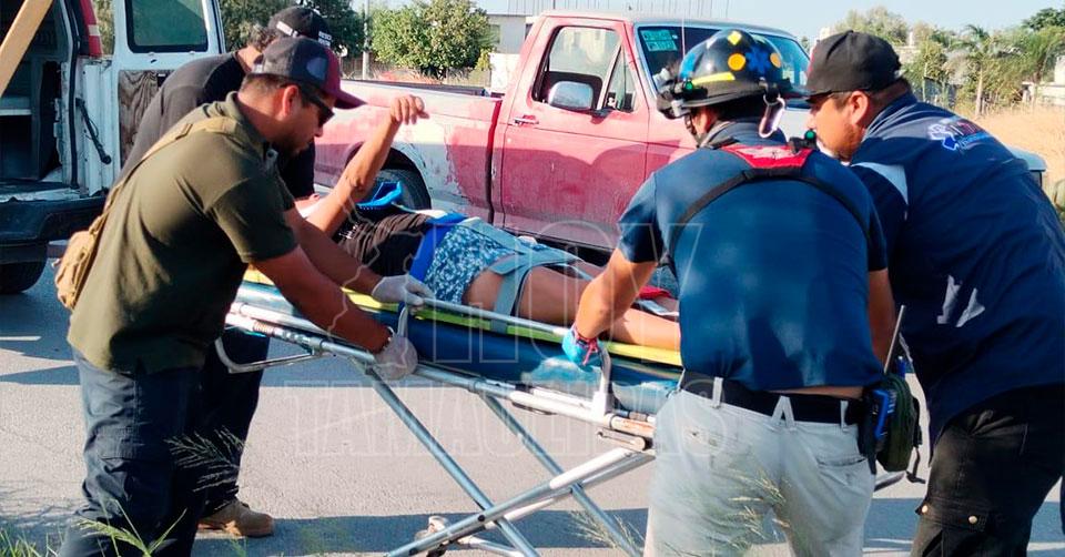 Matamoros, Tamaulipas. - Una mujer de 40 años de edad, quedó gravemente lesionada al ser embestida en la avenida 12 de Marzo, a la altura de la colonia España en Matamoros.