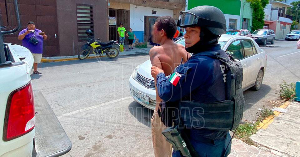 Estos hechos fueron vistos por un ciudadano que pidió el apoyo de la Guardia Estatal, sin embargo, el presunto al ver que lo querían detener llegó a un puesto de venta de ropa y exigió un cambio de ropa, ya que andaba sin playera.