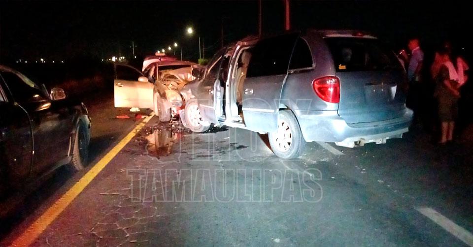 Nuevo Laredo, Tamaulipas. — Cinco personas lesionadas y daños materiales cuantiosos, fue el saldo de un choque de frente entre dos vehículos, provocado por un conductor que se presume manejaba ebrio en la Carretera a Anáhuac, en Nuevo Laredo.