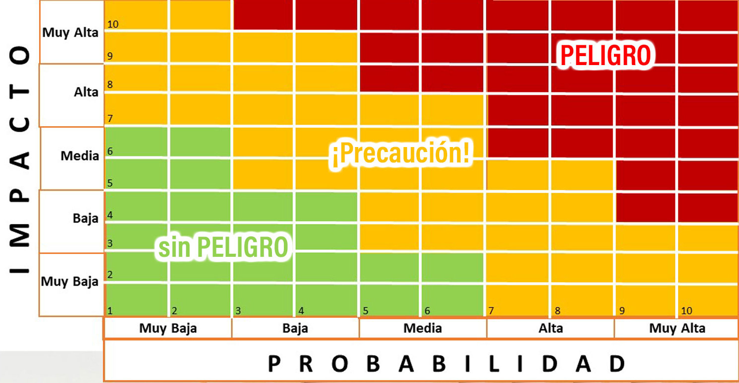 Hagamos un ejercicio. En una hoja pon tres recuadros; en el primero escribe “eventos”, en el segundo “probabilidad” y en el tercero “impacto o daño”