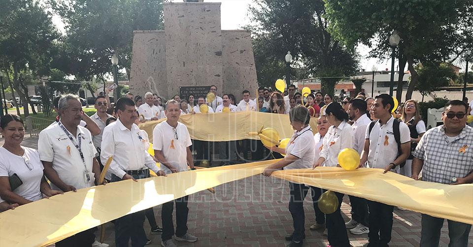 Matamoros, Tamaulipas. - Las autoridades de la Secretaría de Salud en Matamoros iniciaron el mes de la detección de cáncer en menores de edad, con una marcha para hacer conciencia entre los padres de familia y acudan a que revisen médicamente a sus hijos.
