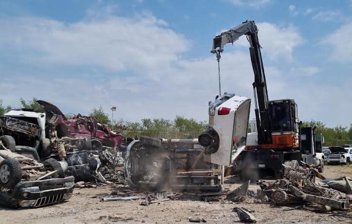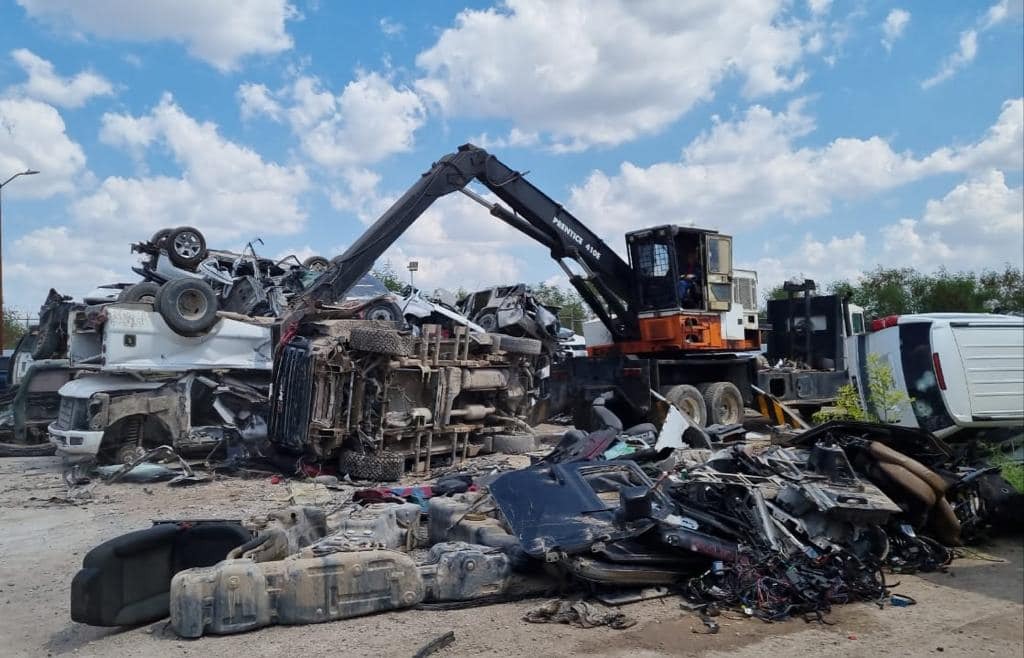Reynosa, Tamaulipas. - La Fiscalía General de la República (FGR), Delegación Tamaulipas, destruyó 25 vehículos de los denominados monstruos con blindaje artesanal, los cuales fueron asegurados por la Secretaría de la Defensa Nacional (Sedena) en diversos enfrentamientos en la entidad, presuntamente utilizados por personas pertenecientes a grupos delictivos.