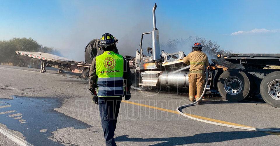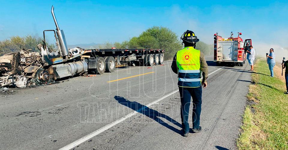 El accidente se registró en el kilómetro 32+500 de la carretera Zaragoza-Victoria, hasta donde arribaron elementos de Protección Civil del Estado y Bomberos de Ciudad Victoria.