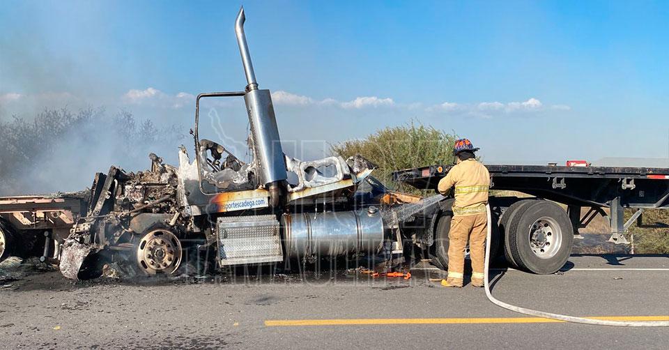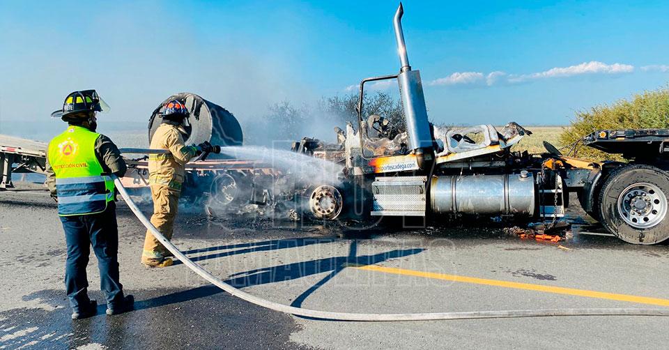 La unidad que terminó convertida en cenizas es propiedad de la empresa Transporteszadega y transportaba rollos de acero en sentido de sur a norte.