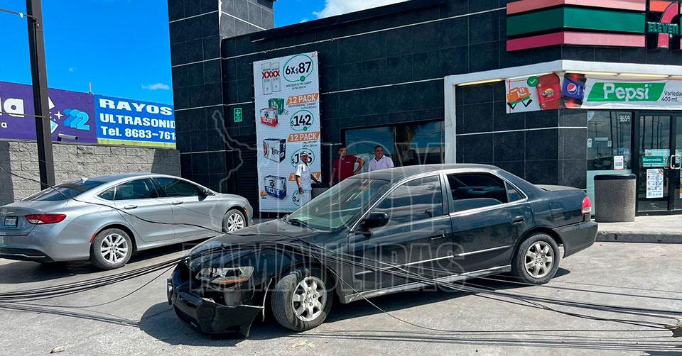Después, el poste que sacó de tajo con el peso se trajo otro y la camioneta fue a rematar con un Honda Accord donde estaba la joven Caro Guadalupe, en avanzado estado de embarazo, quien tuvo que ser trasladada a la referida unidad para su atención médica.
