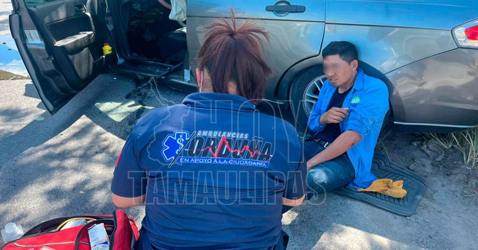 Primero atendieron al conductor del vehículo Ford Focus con placas de Tamaulipas, que dijo llamarse Erick Alfonso, residente del Fraccionamiento Misiones 2, empleado de la JAD.