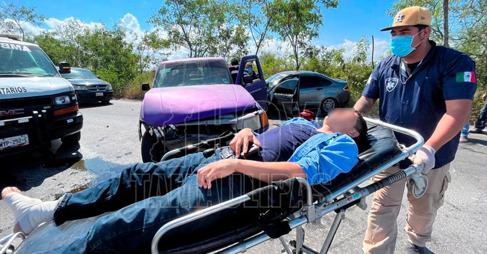 Matamoros, Tamaulipas. - Un fuerte accidente entre un vehículo y una camioneta en Matamoros dejó como saldo dos lesionados, uno de ellos fue hospitalizado de emergencia.