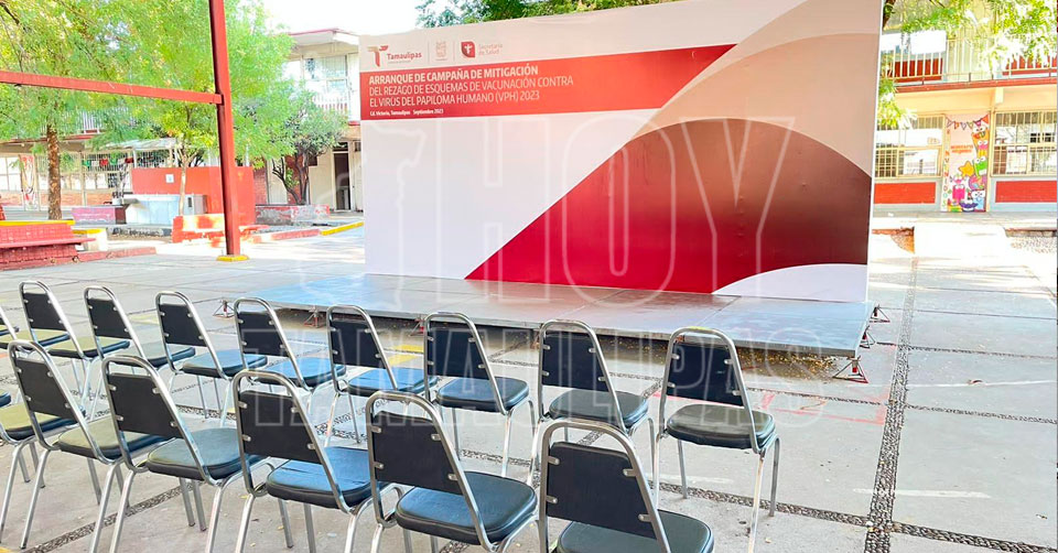 Ciudad Victoria, Tamaulipas. - Un grupo de docentes encabezados por el director de la Primaria Redención de Proletariado, impidieron este día el desarrollo del “Arranque de la Campaña de Mitigación del Rezago de Esquemas de Vacunación contra el Virus del Papiloma Humano (VPH) 2023”, el cual se tenía previsto para hoy por la mañana.