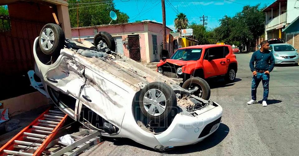 Nuevo Laredo, Tamaulipas.— Un choque con volcadura se registró esta tarde en la colonia Viveros en Nuevo Laredo, luego de que el chofer de un automóvil compacto no respetó la señal de alto y fue impactado por una camioneta, cuya conductora tenía vía libre.
