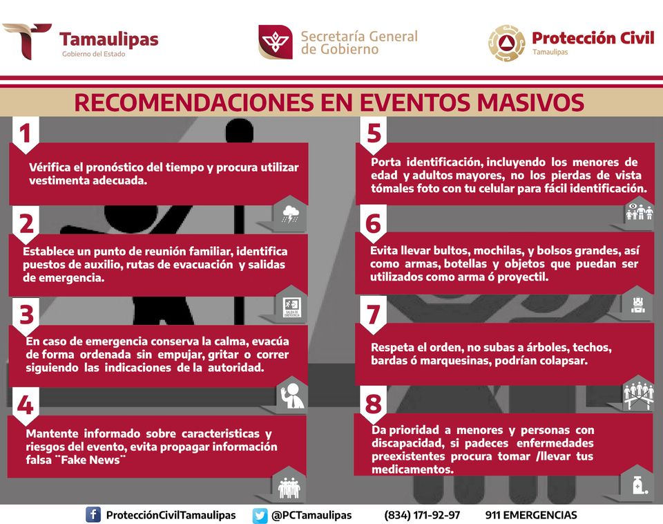 Por otro lado, Protección Civil Tamaulipas emitió una serie de recomendaciones para salvaguardar la seguridad durante las fiestas patrias.
