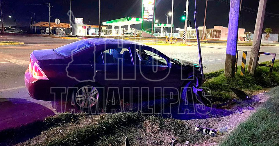 Nuevo Laredo, Tamaulipas.— Por manejar en estado de ebriedad y sin precaución, el chofer de un automóvil se salió del camino y terminó chocando contra la retenida o cable de retención de un poste ubicado sobre la avenida Eva Sámano, al poniente de Nuevo Laredo.