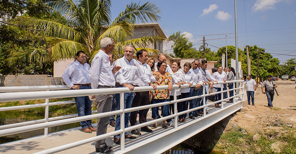 El edil maderense acompañado por sus integrantes del Cabildo, así como del diputado local Jesús Suarez Mata, dijo que “hoy me da mucho gusto venir a unir a 2 colonias y entregarles estos puentes que benefician directamente a 548 vecinos y además esta obra contará con suministro e instalación de luminarias”.