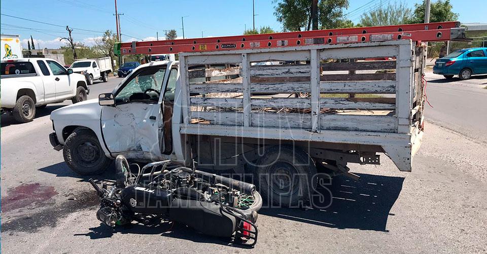 Motociclista grave al estrellarse contra camioneta en Ciudad Victoria