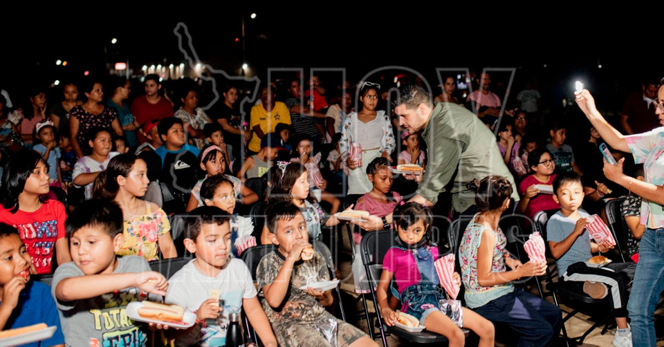 Matamoros, Tamaulipas. – Para que los niños disfruten de una película como si estuvieran en un cine, el diputado local Alberto Granados llevó hasta la colonia Marcelino Miranda en Matamoros, un evento móvil para que menores de edad disfrutaran de una tarde agradable.