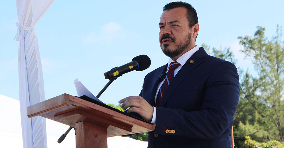 Tampico, Tamaulipas. - El rector Guillermo Mendoza Cavazos presidió en el Centro Universitario Sur la ceremonia conmemorativa por el 73 aniversario de la Universidad Autónoma de Tamaulipas (UAT), y aseguró que la fecha sirve para recordar a quienes le dieron vida a la institución, pero, además, para reflexionar en torno al trabajo para seguir fortaleciendo a la máxima casa de estudios del estado.