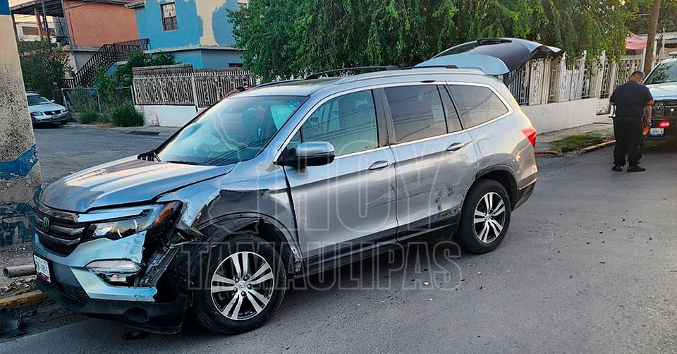 Nuevo Laredo, Tamaulipas.— Una mujer resultó herida en un accidente registrado en la colonia Hidalgo en Nuevo Laredo, provocado por el chofer de una camioneta que omitió la señal de alto.