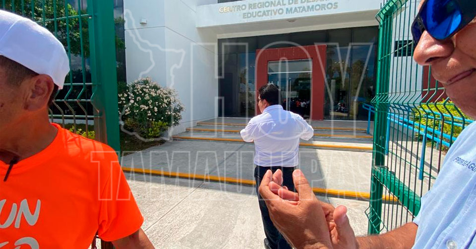 Matamoros, Tamaulipas. – Los maestros que mantenían tomadas las instalaciones del Centro Regional de Desarrollo Educativo (Crede) en Matamoros retiraron la cadena que habían puesto en el portón principal, para hacer la entrega de manera formal de estas instalaciones y retirar el plantón que mantenían desde hace 15 días.