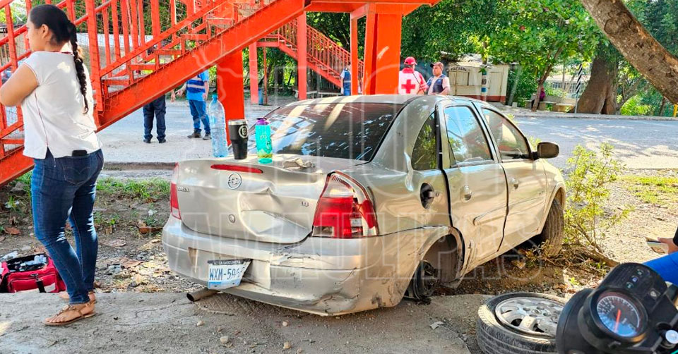 Sin control se estrellaron contra un par de motos que estaban debajo de un puente peatonal y el auto terminó sin una llanta.