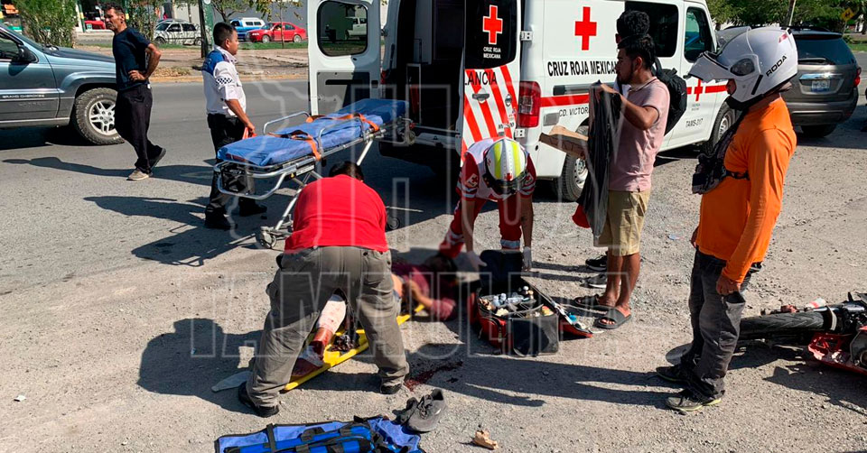 Ciudad Victoria, Tamaulipas. - Un repartidor de Uber resultó con diversas fracturas en el cuerpo después de ser impactada la motocicleta que manejaba por una camioneta, cuya conductora presuntamente omitió la señal de un semáforo.