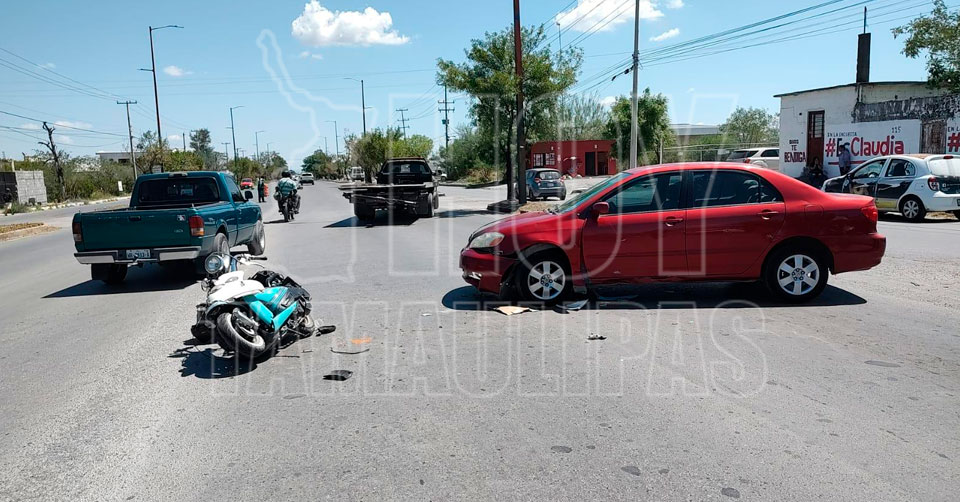 Ciudad Victoria, Tamaulipas. – Un motociclista resultó con fractura de ambas piernas tras estrellarse contra un automóvil cuyo conductor no tuvo la debida precaución al tomar un retorno.