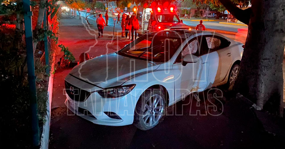 Ciudad Victoria, Tamaulipas. - Un joven estudiante de enfermería y dos amigos más resultaron con lesiones leves durante la noche, luego de que el carro en el que viajaban se estrelló contra un árbol que se encontraba en la banqueta, cuando su conductor perdió el control por sacarle la vuelta a un bache.