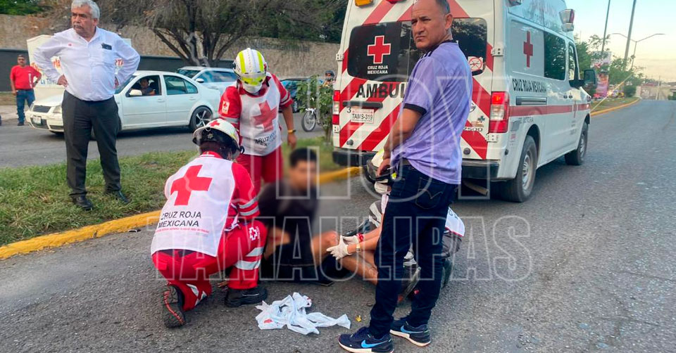 Ciudad Victoria, Tamaulipas. –Un joven motociclista terminó con raspones en extremidades luego de caer de su moto porque una camioneta le cerró su paso, en el Boulevard Praxedis Balboa frente al Supremo Tribunal de Justicia.