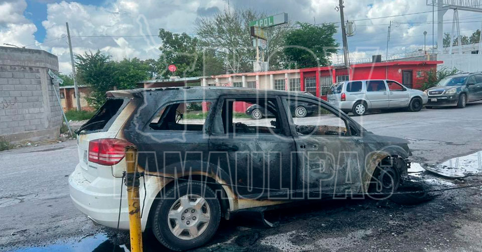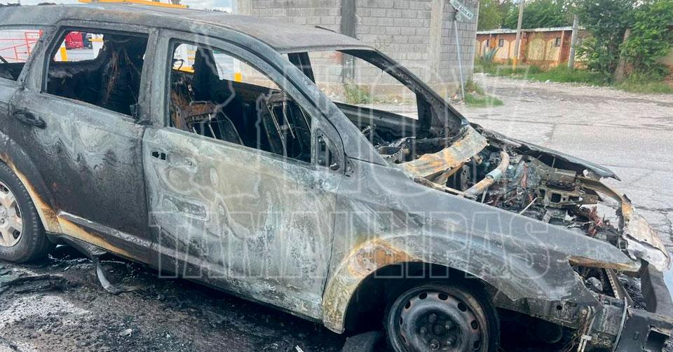 Matamoros, Tamaulipas. - Una camioneta conducida por una mujer quedó totalmente “carbonizada”, al presentar un desperfecto y arder en llamas a un costado de la Central de Autobuses de Matamoros.