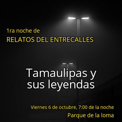 Ciudad Victoria, Tamaulipas. - Los amantes del terror tendrán la oportunidad de pasar una noche “de miedo” escuchando relatos paranormales en el parque de La Loma en Ciudad Victoria, con la “1ra noche de RELATOS DEL ENTRECALLES”.