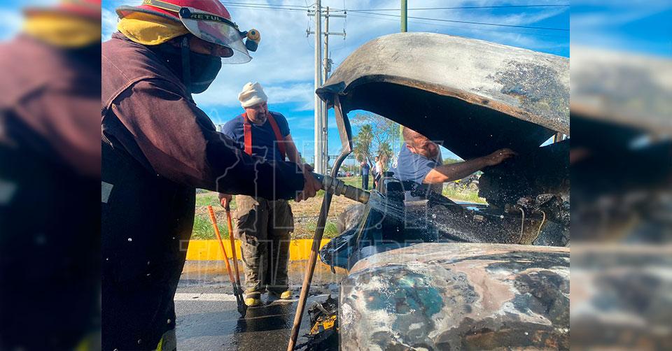 El conductor logró ponerse a salvo y pidió el apoyo de guardias estatales que pasaban por el sitio, quienes llamaron a los Bomberos.