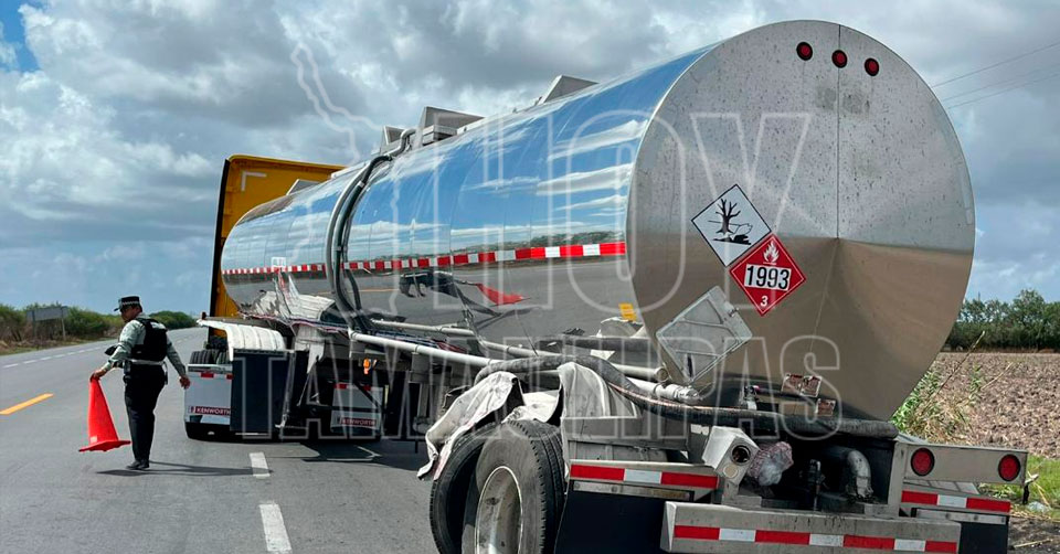Dormita trailero y choca contra pipa en la Matamoros-Victoria