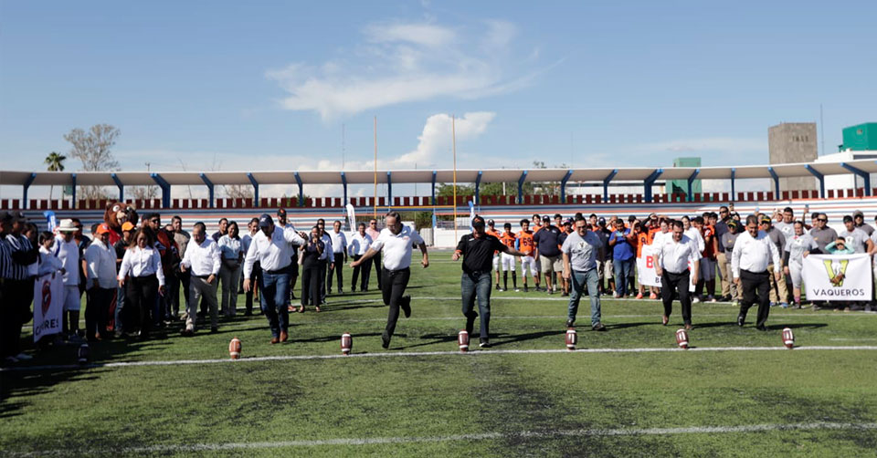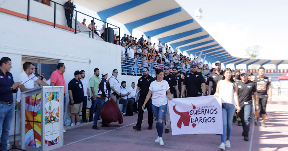 Acompañado por titulares de las diferentes facultades y unidades académicas de la UAT, el rector se trasladó al centro del campo para dar la patada inicial del torneo y del encuentro inaugural entre los Cuernos Largos de la Facultad de Medicina Veterinaria y Zootecnia y los Vaqueros de la Facultad de Ingeniería y Ciencias.