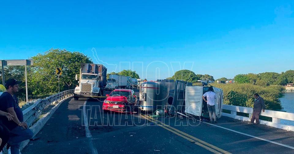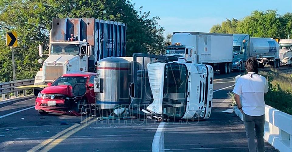 El accidente donde resultó herido el tripulante del vehículo de carga ocurrió la tarde de este jueves sobre la vía de cuota, pasando la Casa de la Naturaleza, en el municipio de Tampico.
