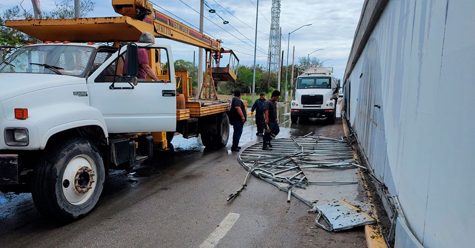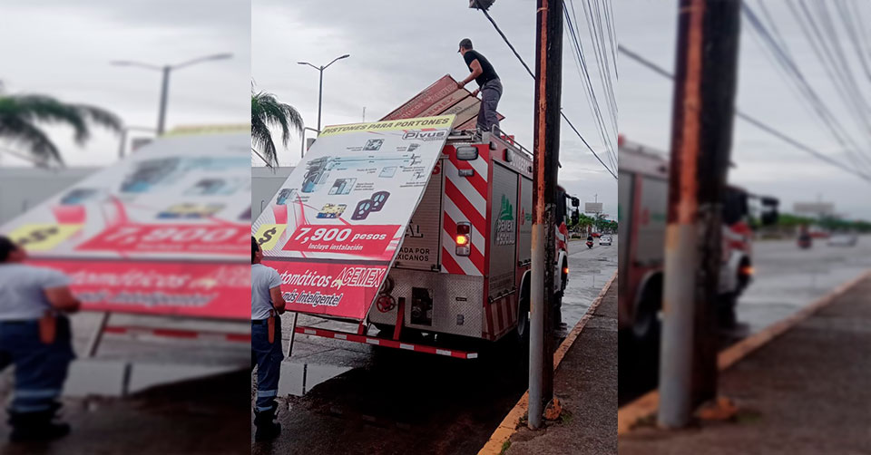 Detalló que personal de bomberos también procedió a retirar de manera oportuna un espectacular en la avenida Álvaro Obregón esquina con Pedro J. Méndez, así como el desprendimiento de una estructura metálica en el puente desnivel ubicado en la Avenida Tamaulipas.
